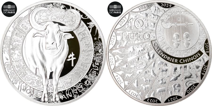 France, 10 Euro, CALENDRIER CHINOIS ANNÉE DU BUFFLE, 2021, , Silver