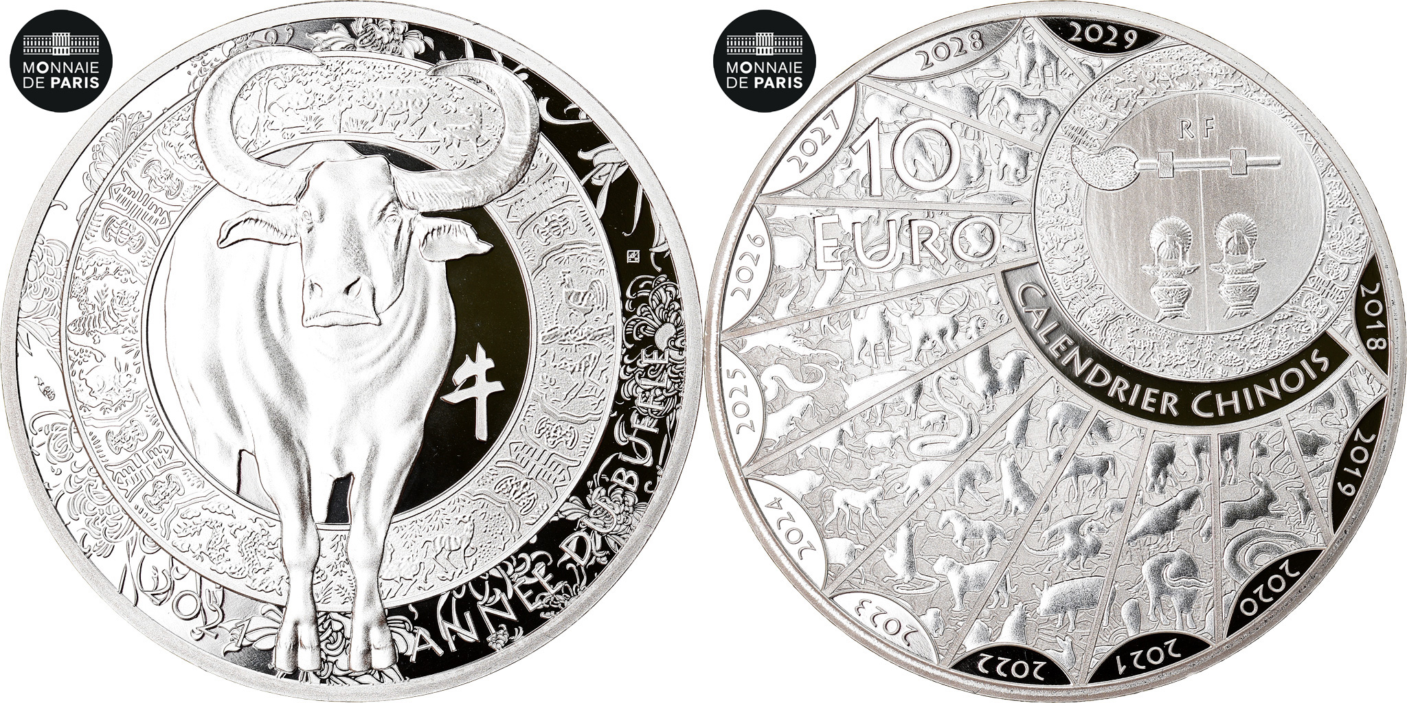 année du buffle 2024 France, 10 Euro, CALENDRIER CHINOIS ANNÉE DU BUFFLE, 2021, , Silver: TEXT_3. TEXT_4.