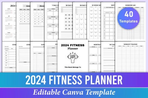 Editable 2024 Fitness Planner Canva Templates Digital Planner Etsy