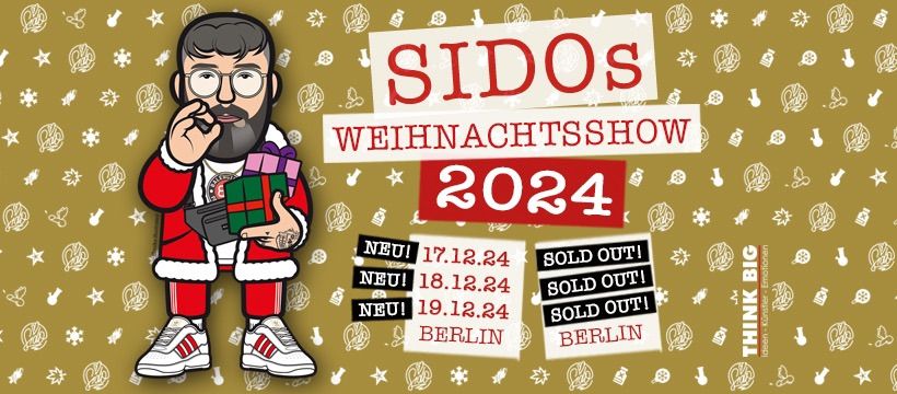 sido weihnachtsshow 2024 – Sido begibt sich vom 06.07.2024 bis zum 15.08.2024 auf Tour. Für die Veranstaltungsreihe mit dem Namen “Sido – Live Mit Dir Open Air 2024” macht er unter anderem in Kitzingen bei Würzburg, Bergen auf . Gleich zehnmal bittet Deutschrap-Held Sido diesen Monat zu seiner „Christmasshow“, und gleich zehnmal ist die Columbiahalle „ausverkauft“. Und das Gleiche wird, bereits ein Jahr zuvor, für zwei Weihna .